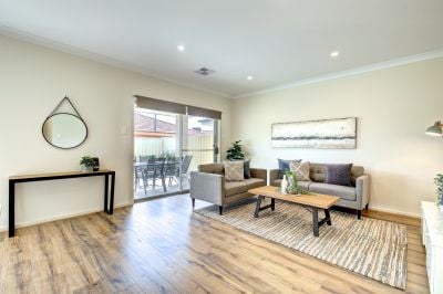 Upon entering this home you are greeted by a multi-function space that acts as a fun den, media room or office option and walking through the entryway, the open-plan living area begins with a generous kitchen space which connects seamlessly with a spacious living area. The living area is further enhanced with large picture windows and glass sliding door leading to the outdoor courtyard overlooking the established lawns.