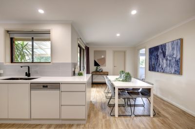 Upon entering this recently renovated home and walking through the slated entryway, the light and bright open-plan living area begins, with a generous living area, boasting a huge built in television giving a cinema like experience for the whole family to enjoy whilst enjoying the luxurious feature gas fireplace.