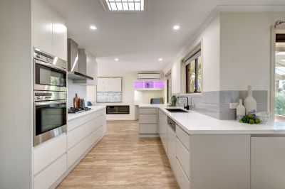 For the aspiring chefs, and for all who desire luxury cooking environments, you've come to the right place! Deluxe stainless steel appliances, large working and food prep zones expertly arranged incorporating a breakfast bar, gas cook top with range hood, wall mounted oven combined with microwave, dual sink with mixer tap with colour coded dishwasher plus large walk in storage pantry an added bonus.