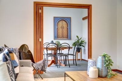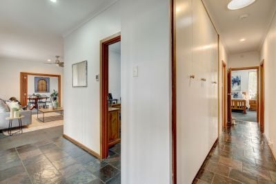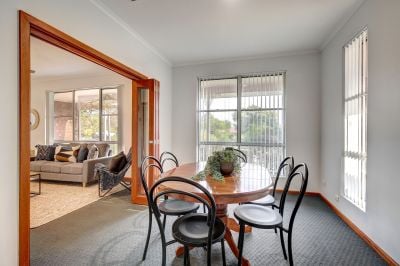 Upon entering this home and walking through the slated entryway, the light and bright, gas heated living area begins, with large picture windows framing the views over the front gardens and timber and glass bi fold doors providing access to the generous size dining facility.