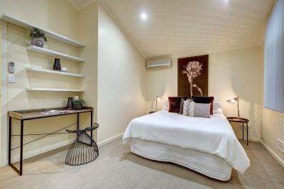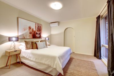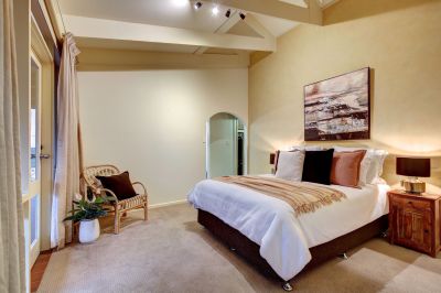 There are 4 bedrooms ,the master suite being of ample proportions with lofty beamed ceilings, gorgeous views, beautiful ensuite bathroom, large walk in robe plus lovely study or parents retreat. Bedrooms 2 and 3 also with the added advantage of built in robes with mirror fronts plus split system R/C Air Conditioning, bedroom 4 with walk in robe plus split system r/c air conditioning.