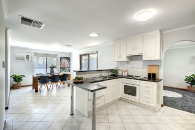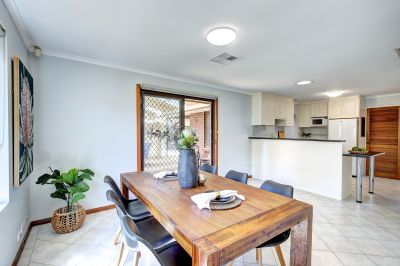 Happy living starts here, offering easy and enjoyable spaces to live in, offering plenty of room for the whole family to spread out A loved and cared for family home where entertaining is always a pleasure with splashes of individuality, having been designed for a family to live in comfort with an inner harmony which immediately invites relaxation and enjoyment. This home is sure to impress. Attributes include entrance hall opening onto gorgeous lounge dining with large picture windows taking in views over the established front garden, and to the rear, a full length covered entertaining space. The stylish kitchen has been designed with flair and finesse, with ample built in cupboards along with benchtop space, dishwasher filtered water, under bench oven with gas cook top complimented with rangehood, ideally positioned to serve through to the dining as well as overlooking the family room incorporating second meals with reverse cycle air conditioning together with large glass sliding door providing access to an extensive covered outdoor entertaining area for year round entertainment. There are 3 bedrooms, the master suite located to the front of the home overlooking the front garden with the benefit of an ample size walk in robe, all with ceiling fans, bedroom 3 with the added benefit of built in robes.. To complete the offering this home also has been re painted and has had new carpets and offers a stylish bathroom, separate wc, ducted evaporative Air Conditioning, fitted laundry, downlights, extensive double width carport leading to a double width garage, solar panels plus 2 rain water tanks set amidst established gardens . Ideally located just minutes from local shops, reserves, A fantastic selection of Quality Primary and Secondary Schools to choose from, Transport taking you to the Salisbury & Mawson Lakes Interchange, with travel time to the CBD less than 30 minutes away via the Northern Express Way.