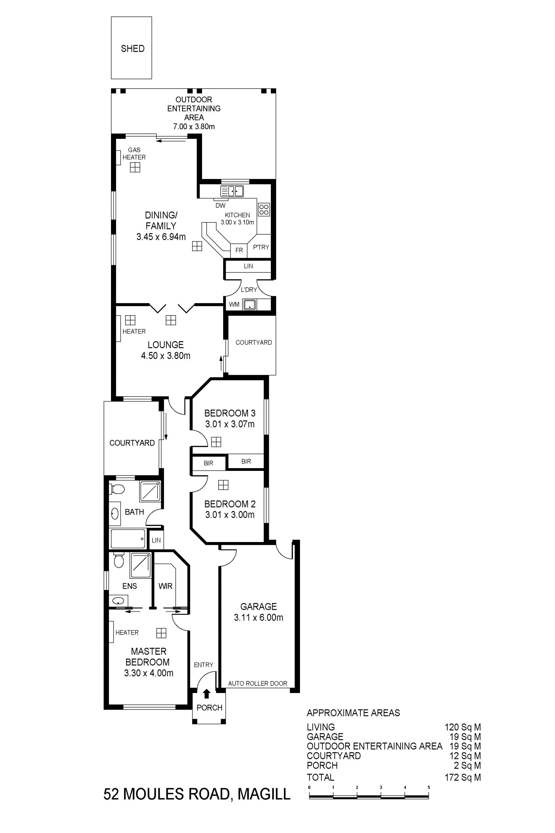 There are 3 ample size bedrooms, the master suite being located to the front of the home enjoying a, walk in robe, ensuite bathroom plus split system rc air conditioning. Bedroom 2 and 3 also with the added advantage of built in robes. To complete the offering this home also offers a deluxe main bathroom with second wc, fitted laundry, ducted evaporative air conditioning system, automatic remote-control door to garage with rear door providing access to the courtyard space. Internal access from the garage, security system, garden shed plus more revealed upon inspection.