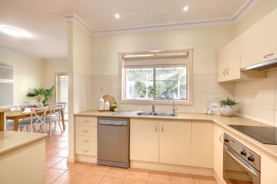 Attributes include, entrance hall leading to a lovely formal Lounge with large picture windows overlooking as well as providing access to a private paved courtyard with covered shade. The stylish kitchen has been beautifully designed with ample bench top and storage space including a corner pantry, double bowl sink with pura tap, built in dishwasher, under bench oven with cook top serviced by an ample size range hood overlooking an open plan Family Room with Dining facility, enjoying expansive windows incorporating sliding glass door providing access to a sensational size paved, covered pergola area and beyond to landscaped rear garden with lawned complimented with fruit tree and shrubs as a backdrop.