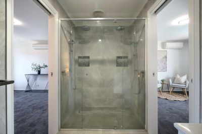 There are 3 generous size double bedrooms, the master suite with deluxe ensuite bathroom with dual showers plus walk in robe, bedroom 2 with access to bathroom, the remaining double bedroom located on the ground floor adjacent to the main bathroom.